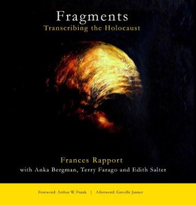 2013: Fragments: Transcribing the Holocaust. Testimony by Holocaust survivors Anka Bergman, Terry Farago and Edith Salter (in Cardiff) – transcribed in poetic form by Frances Rapport.